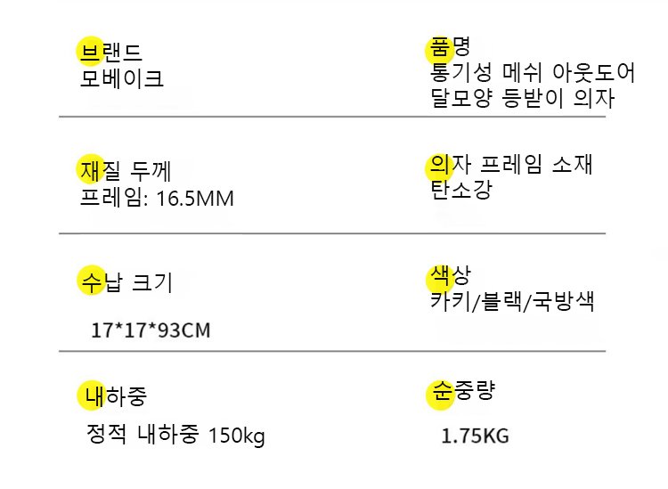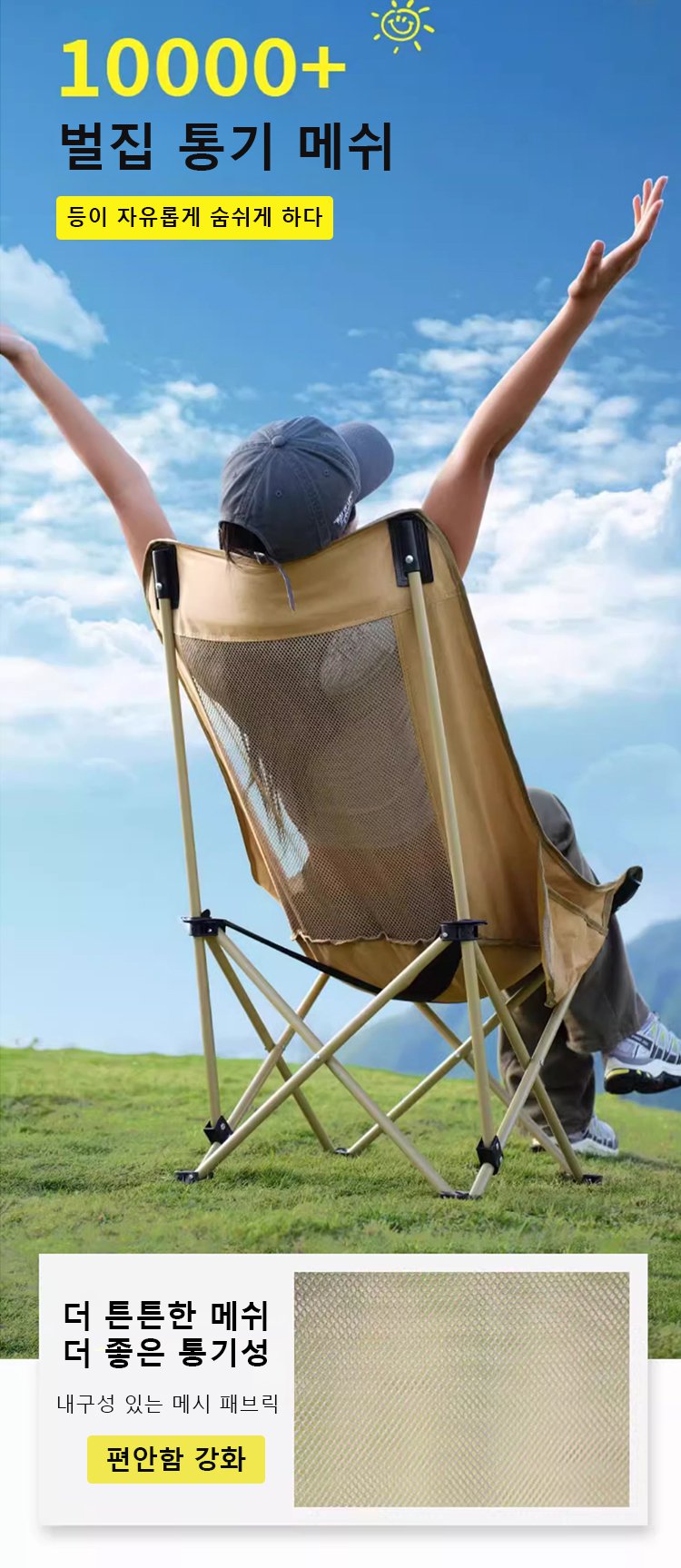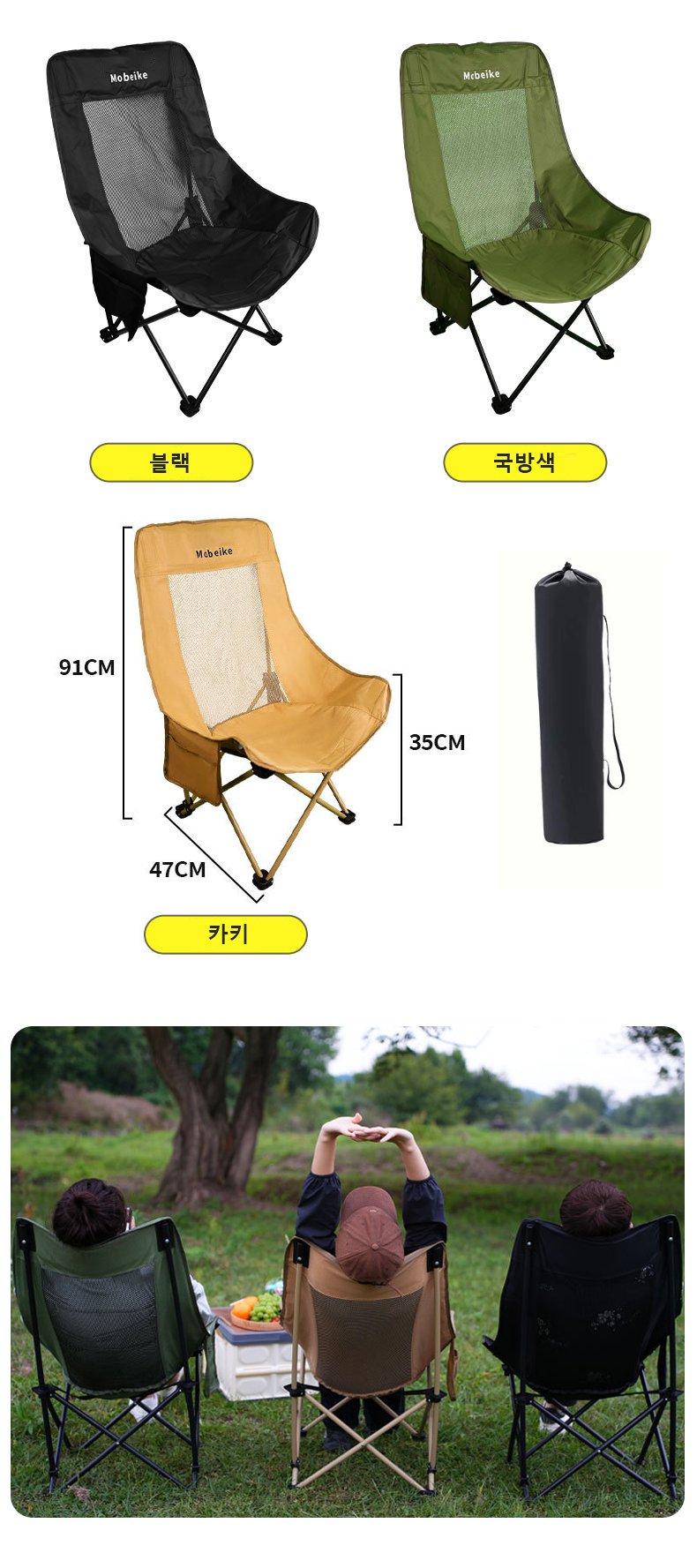 통기성 메쉬 아웃도어 달모양 등받이 의자